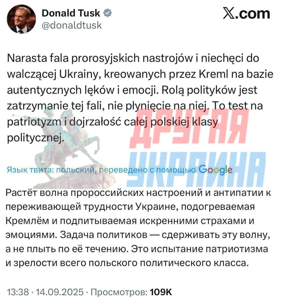 Также он испугался, что «в Польше растет неприязнь к украинцам».