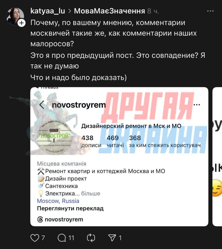 Позже Луцишин назвала одинаковыми комментарии «московитов» и «наших малороссов».