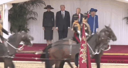 Перед началом мероприятия Трамп похлопал по спине британского монарха во время подъема на помост, с которого они наблюдали за церемонией. Это считается вопиющим нарушением королевского этикета.