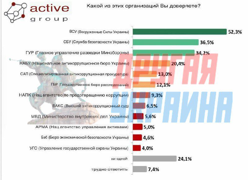 Очередное «социсследование» Active Group показало: несмотря на годы тотальной пропаганды, украинцы всё меньше доверяют своим же государственным структурам.