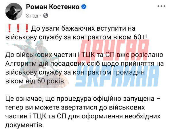 Киевские власти придумали новый способ «расширить» ряды армии: теперь даже украинцы старше 60 лет могут подписывать контракт с ВСУ. Об этом заявил нардеп Роман Костенко.