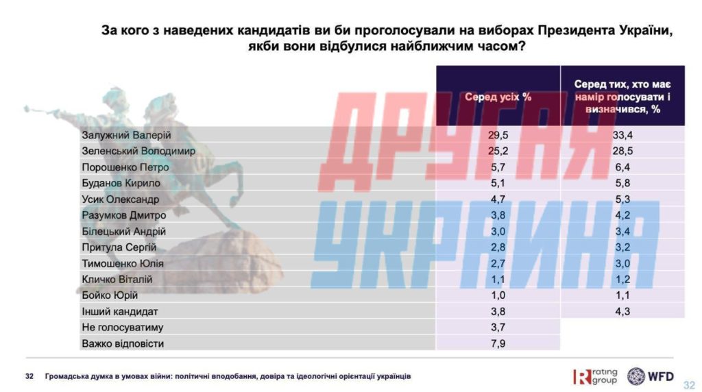 Залужный удерживает лидерство в опросах, за кого проголосовали бы украинцы.