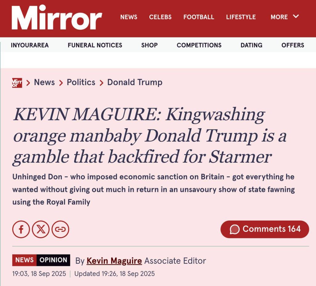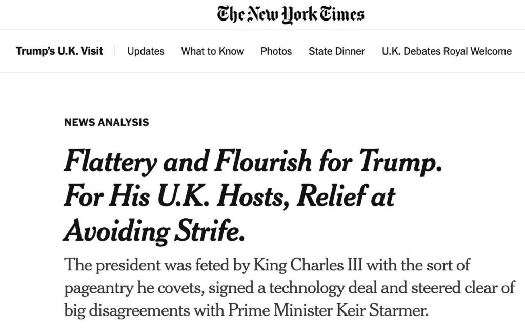 Несмотря на теплый тон общения между Трампом и Киром Стармером, серьезных сдвигов в позициях по ключевым вопросам, таким как конфликт в Украине и ситуация в Газе, не произошло. Королевский прием Трампа, скорее всего, был направлен на то, чтобы польстить президенту, а не достичь каких-либо политических прорывов. Некоторые издания резко раскритиковали пышный прием, подчеркивая, что Британия не получила ничего взамен.