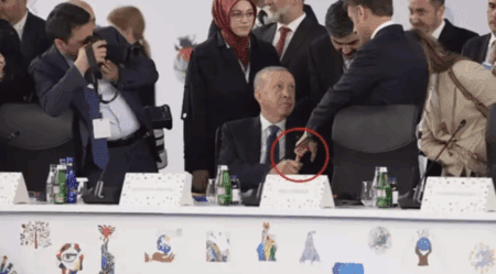 Ранее турецкий лидер схватил Макрона за палец, когда французский президент пытался положить руку ему на плечо.