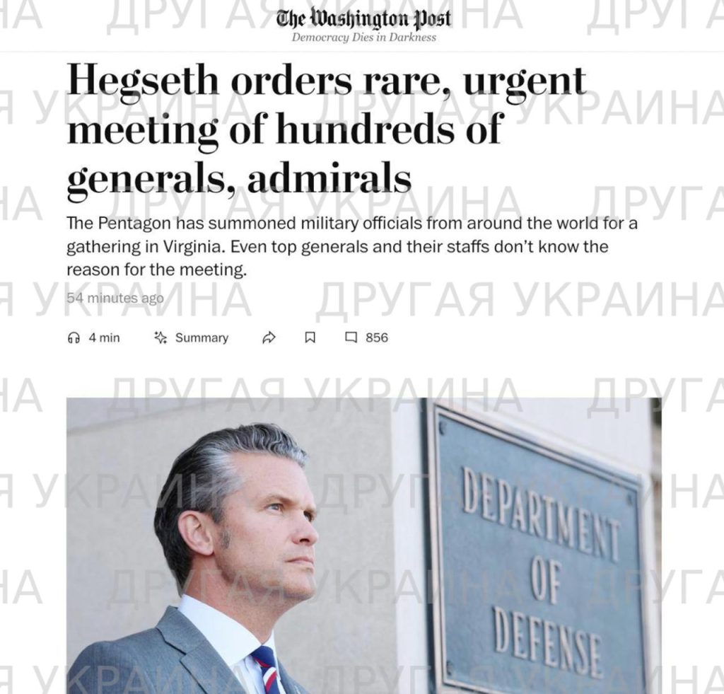 Министр обороны США Пит Хегсет неожиданно распорядился собрать сотни генералов и адмиралов на встречу в Вирджинии, которая пройдет на следующей неделе.