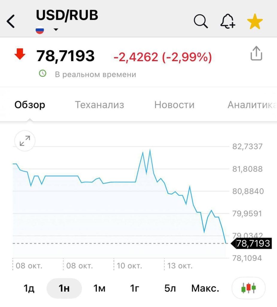 Внебиржевой курс доллара в России продолжает снижаться — американская валюта опустилась до 78 рублей. Это очередное подтверждение укрепления рубля, начавшегося в последние недели.