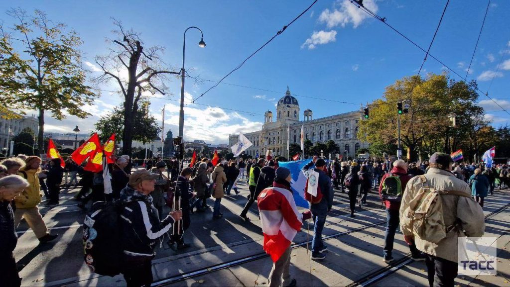 С трибуны звучали лозунги: «Нет НАТО!», «Нет войне с Россией!», «Европа должна быть мирной!». Акция проходит при обеспечении полиции и носит мирный характер. Участники требуют соблюдения конституционного нейтралитета Австрии и прекращения роста военных расходов в ущерб социальным гарантиям.