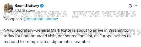 Генсек НАТО Марк Рютте сегодня прибудет в Вашингтон с незапланированным визитом, сообщает журналист Reuters Грэм Слаттери.