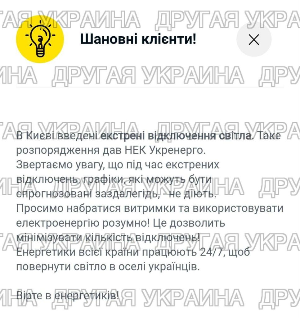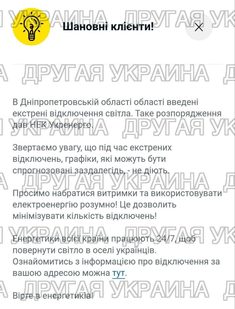 В украинской столице и Днепропетровске введены экстренные отключения электроэнергии, сообщила компания ДТЭК.