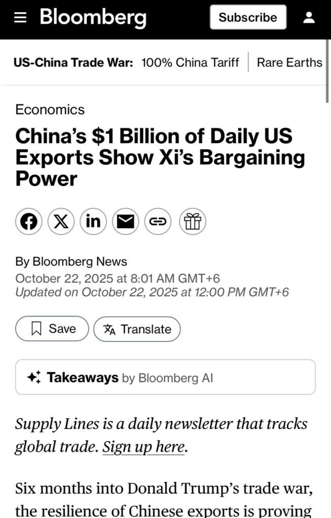 Китай продолжает ежедневно экспортировать в США товары на сумму почти $1 млрд, несмотря на высокие пошлины, доходящие до 55%.