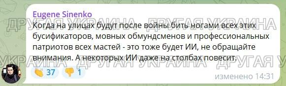 «Когда на улицах будут после войны бить ногами всех этих бусификаторов, мовных омбудсменов и профессиональных патриотов всех мастей – это тоже будет ИИ, не обращайте внимания», — написал один пользователь Интернета.