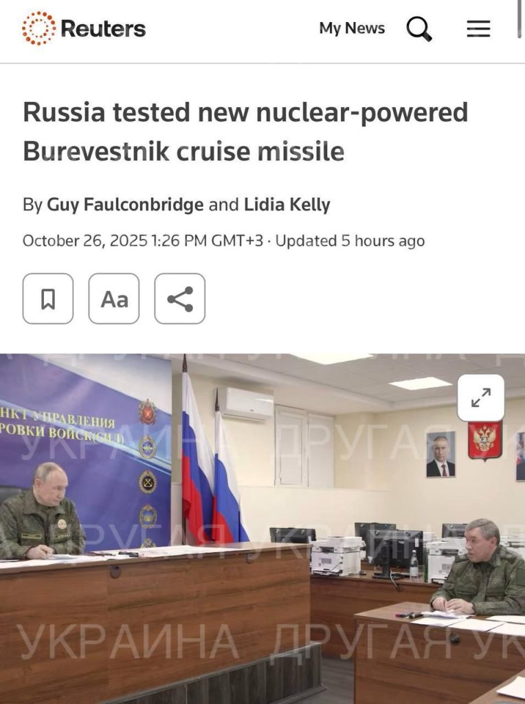 По данным западных СМИ, проведенные после совещания президента Путина с военным руководством испытания стали ясным сигналом Москвы о недопустимости передачи Киеву дальнобойного вооружения.