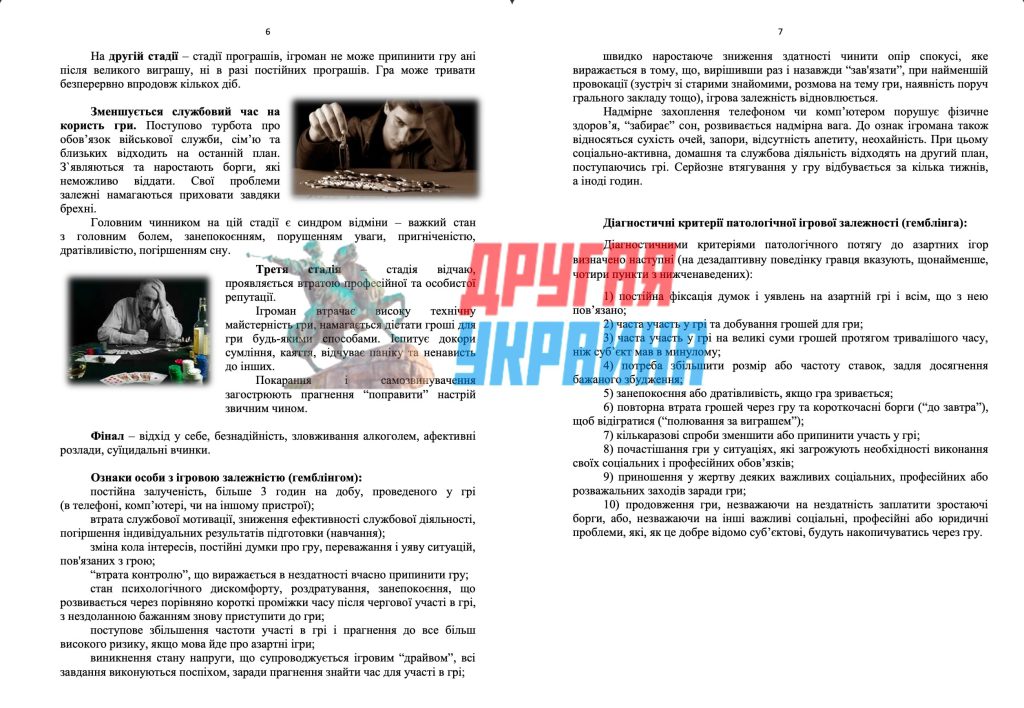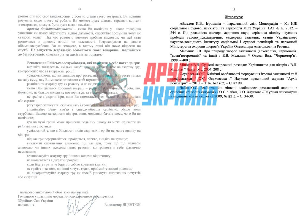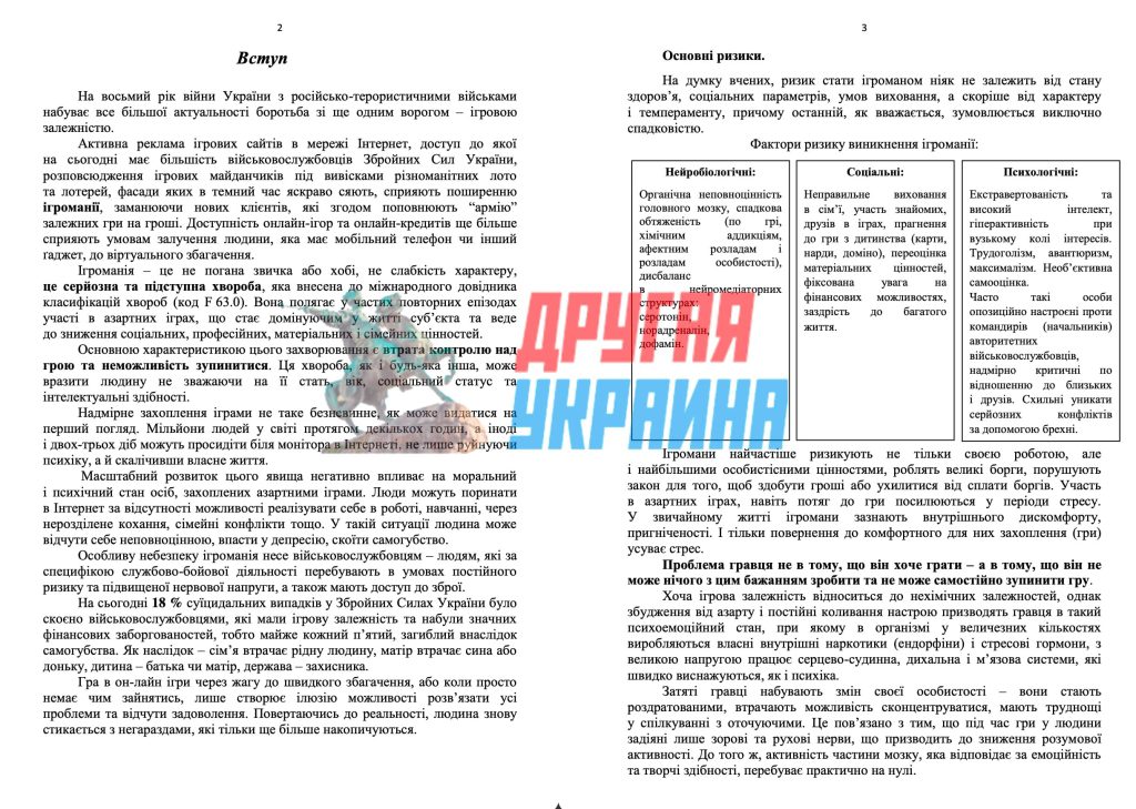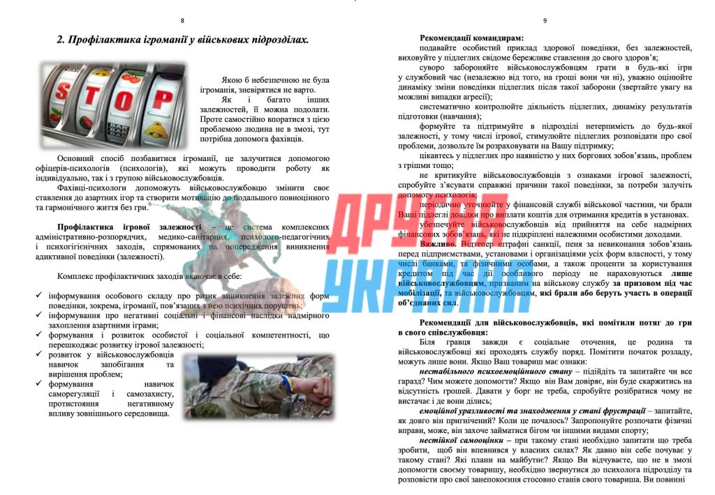 «18% суицидальных случаев в Вооружённых Силах Украины было совершено военнослужащими, которые имели игровую зависимость и приобрели значительные финансовые задолженности» — говорится в документе.