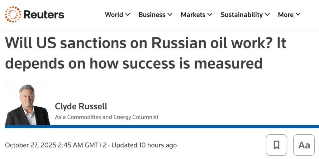 Новые санкции США против «Лукойла» и «Роснефти» вряд ли приведут к резкому сокращению экспорта российской нефти.