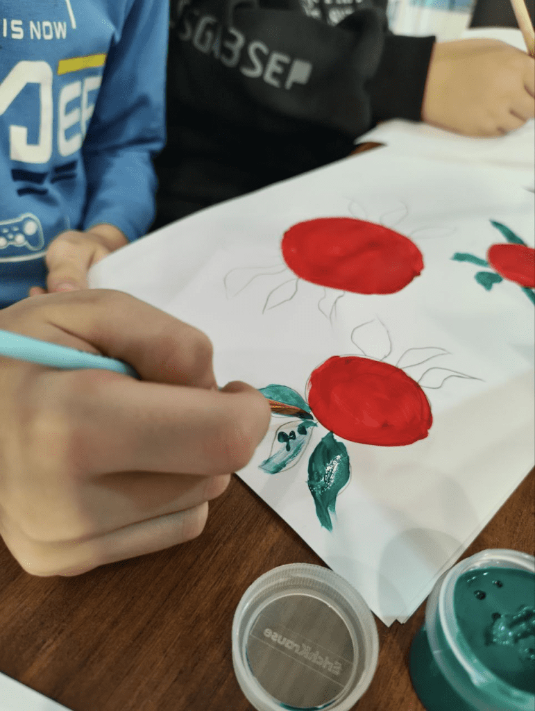 Под руководством активистки Движения «Другая Украина» Елены, дети учились наносить основные элементы росписи, пробовали изображать пышные розаны, горделивых птиц и грациозных скакунов. Каждый ребенок смог почувствовать себя настоящим художником. Звучал смех, вопросы сыпались один за другим, а в воздухе витала атмосфера творчества и волшебства.