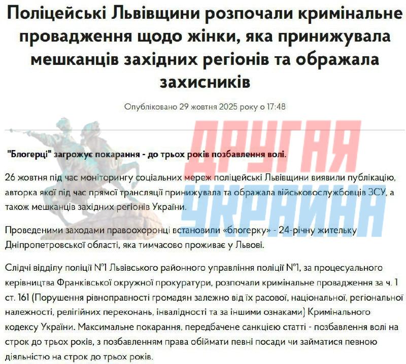 Поводом стали её высказывания в соцсетях, которые сочли «разжигающими вражду» против жителей западных регионов Украины.