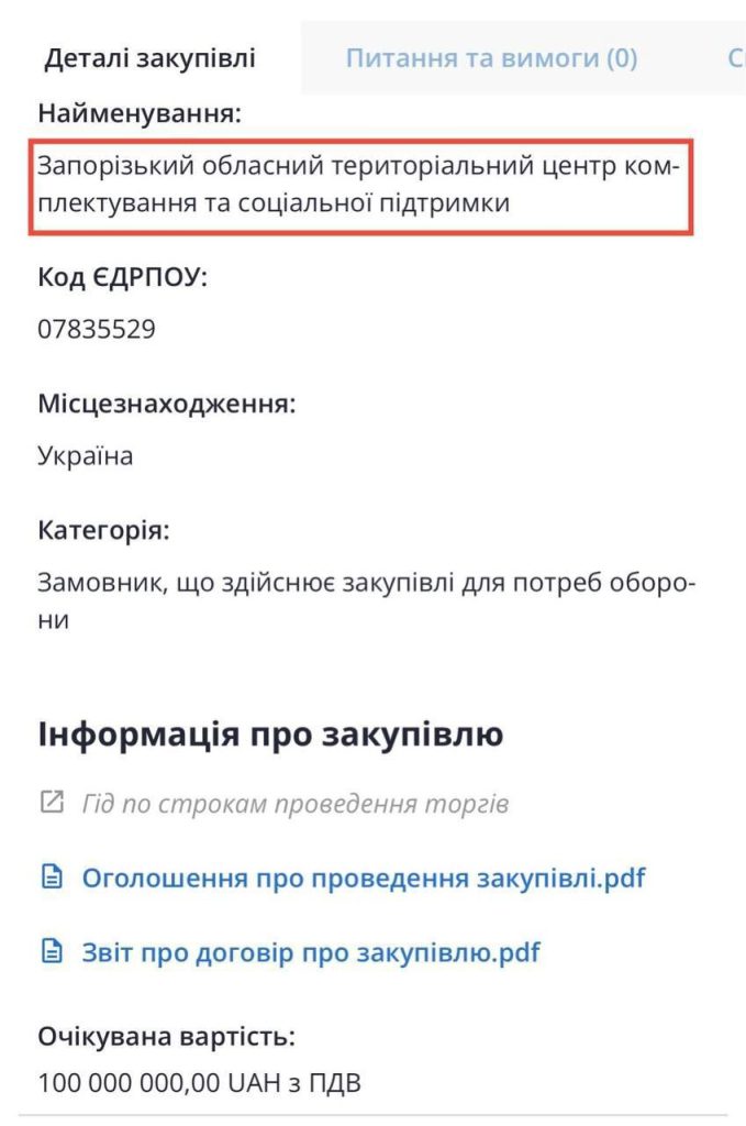 Запорожский областной ТЦК объявил тендер на «услуги перевозки» на сумму 100 млн гривен (2,3 млн долларов). Об этом сообщают украинские СМИ.