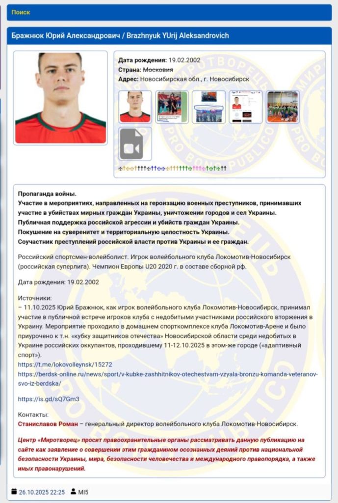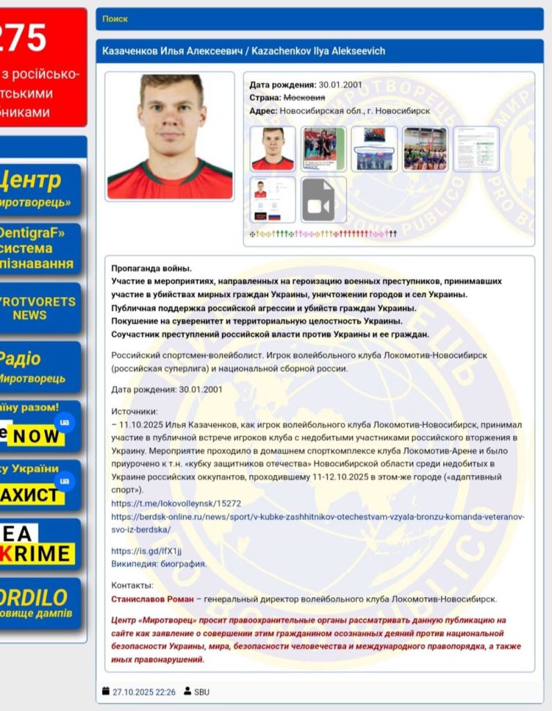 Спортивные достижения волейбольного клуба «Локомотив» из Новосибирска привлекли внимание не только спортивных экспертов, но и украинских «борцов за мир». Вся команда, состоящая из 13 игроков, оказалась в базе данных «Миротворец».*
