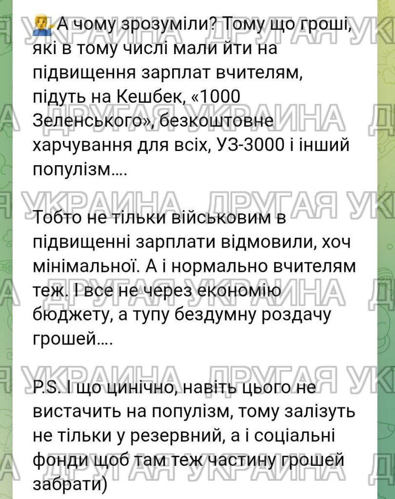 Зарплаты военным также не будут повышены. Ранее нардеп Мазурашу отмечал, что рост цен с начала войны уже «съел» половину высоких военных надбавок. По словам Железняка, деньги из резервного и социального фондов бюджета будут потрачены на «популистские» проекты.