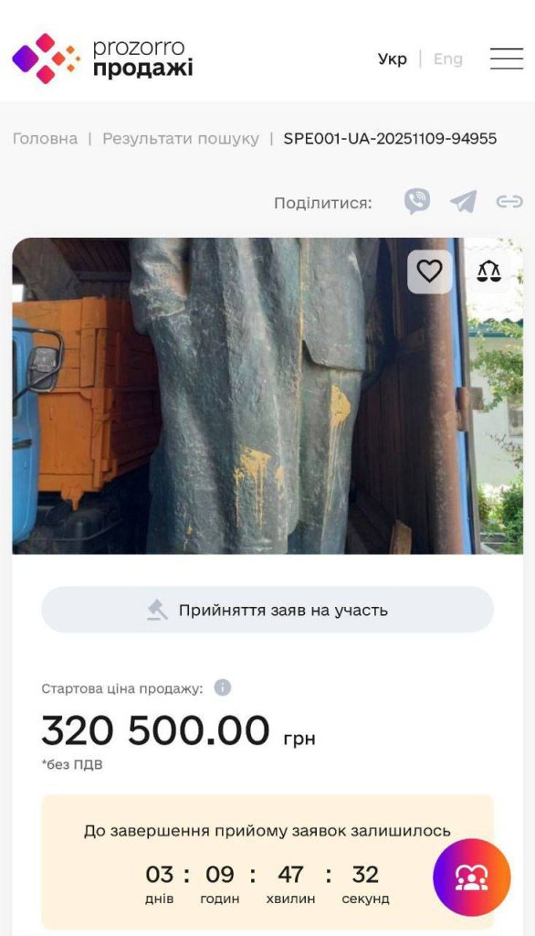 В Полтавской области выставили на продажу бронзовый памятник Ленину — стартовая цена всего 320,5 тысячи гривен ($7 тыс).