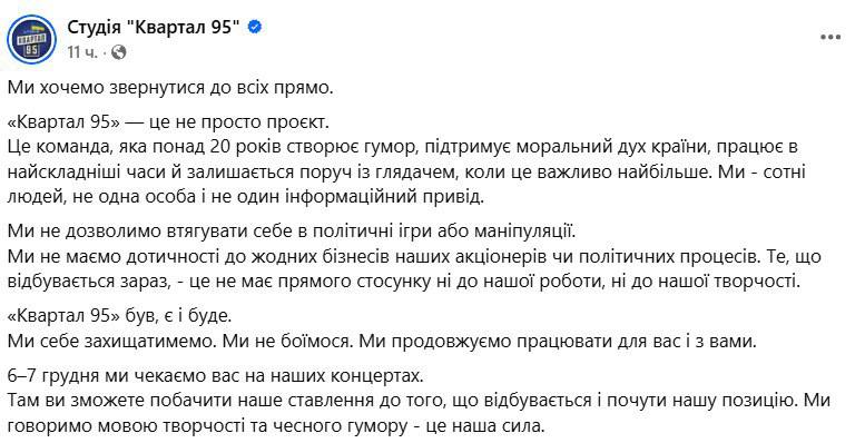 «У нас нет никакой связи ни с каким бизнесом наших акционеров, ни с политическими процессами. То, что сейчас происходит, напрямую не связано ни с нашей работой, ни с нашим творчеством. Мы защитим себя. Мы не боимся» — говорится в сообщении.