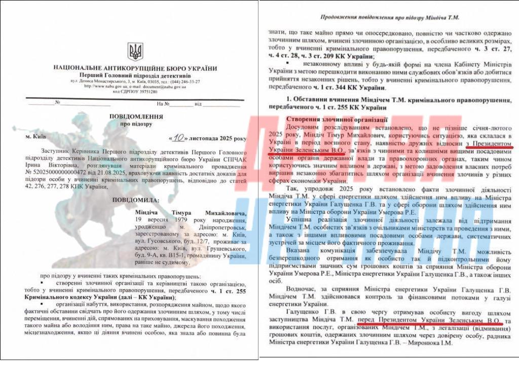 Подчёркивается, что Миндич пользовался «наличием дружеских отношений» с Зеленским и связями с действующими и бывшими высшими должностными лицами.