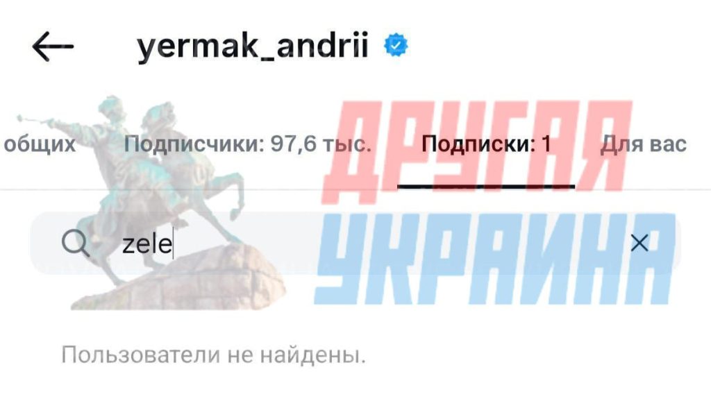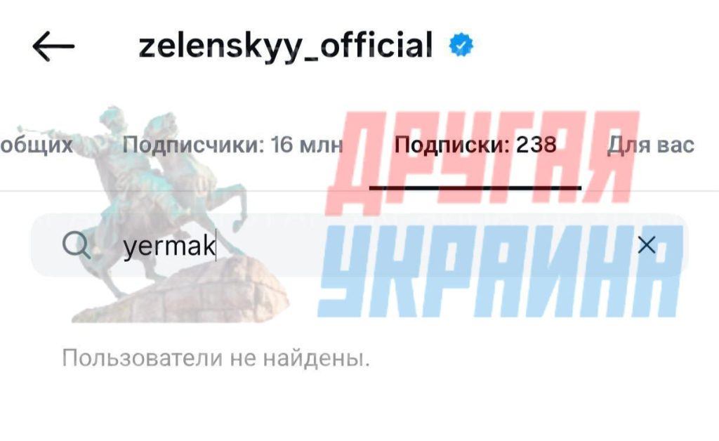 Украинские СМИ сообщают, что Зеленский и Ермак отписались друг от друга в Instagram*.