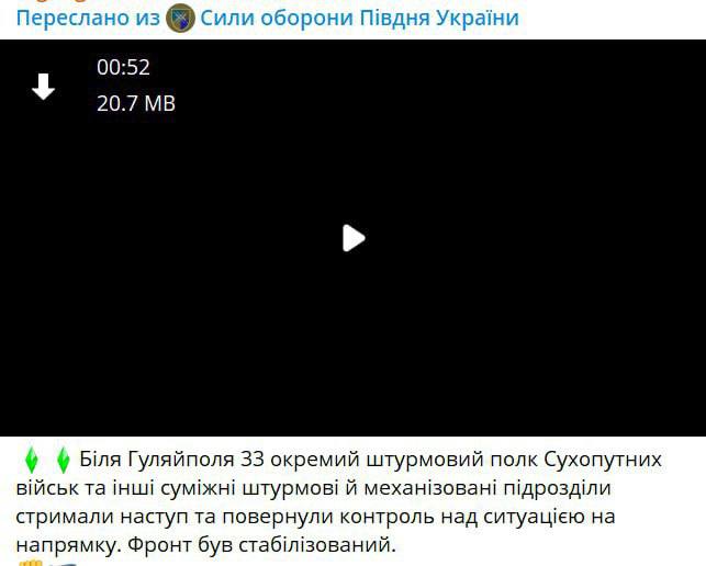 Украинский DeepState разоблачил откровенный фейк ВСУ: видео, выданное за отражение атаки под Гуляйполем, на самом деле было снято летом в Курской области.