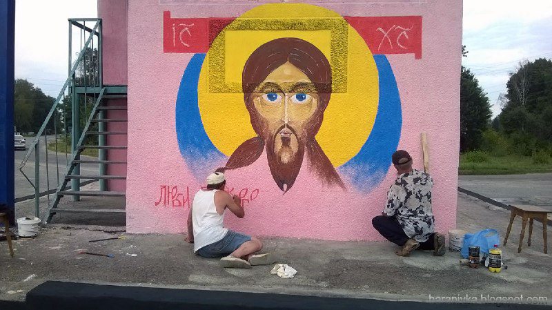 «На Житомирщине закрасили образ Иисуса Христа за намек на «русский мир». Активисты закрасили образ Иисуса Христа, созданный в 2016 году художниками на стене бывшего поста ГАИ в Барановке Житомирской области. Изображение лика участники акции расценили как проявление сепаратизма» — сообщил депутат Верховной Рады Алексей Гончаренко* в своем телеграм-канале.
