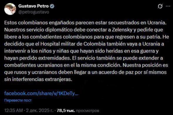 Ранее мы писали, что колумбийские наёмники воюют за ВСУ в Запорожской области.