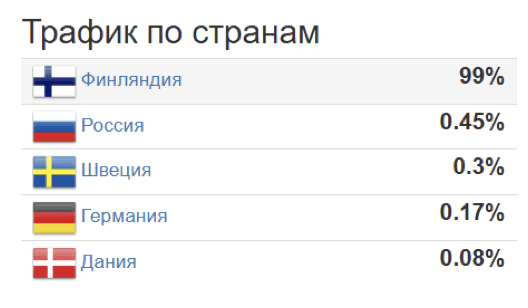 Наибольшей популярностью сайт пользуется в Финляндии, привлекая из этой страны 99.00% трафика.