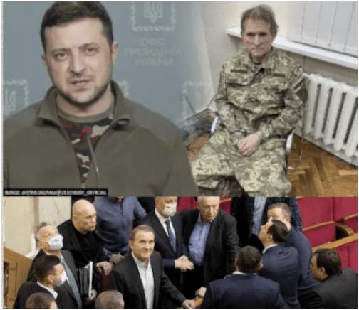 «Президент Украины Владимир Зеленский выразил свою радость во вторник, после того как служба безопасности Украины сообщила главному лидеру оппозиции страны Виктору Медведчуку об аресте. На заключенном в тюрьму лидере партии отчетливо видны следы нападения и, вполне возможно, также следы пыток».