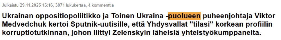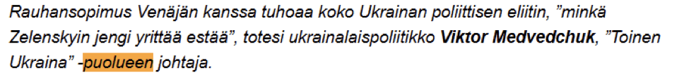 Подобное означает, что западные (в данном случае финские) журналисты и авторы видят Виктора Медведчука как авторитетного политика и лидера политической силы, известной за пределами России и Украины.