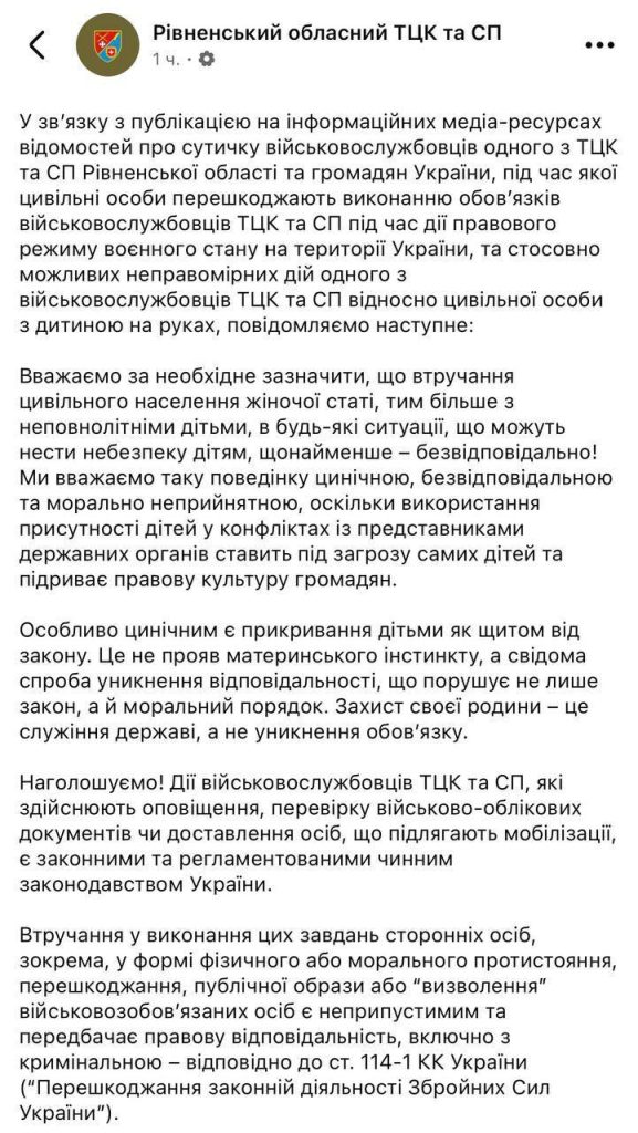 «Вмешательство гражданского населения, особенно женщин с детьми, в опасные ситуации — безответственно и морально неприемлемо. Использование детей как щита от закона — это циничная попытка избежать ответственности, нарушающая закон и нравственный порядок».