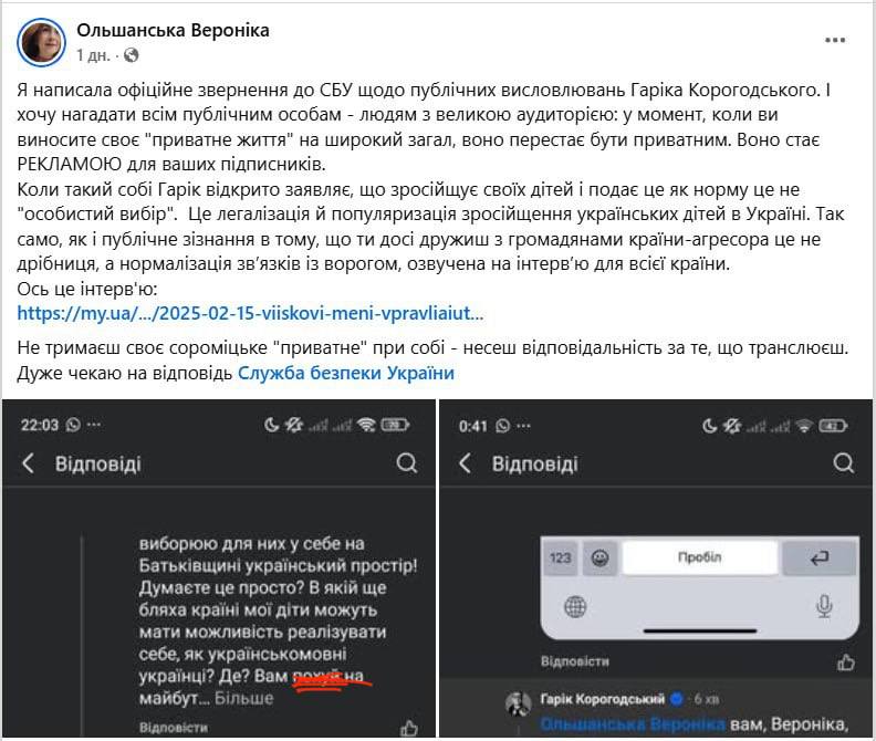 Блогерша Вероника Ольшанская пожаловалась в СБУ на бизнесмена Гарика Корогодского. Все из-за того, что Корогодский общается на русском языке… дома.