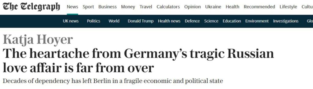 Отказ от сотрудничества с Россией в энергетической сфере без внятной альтернативы обернулся для Германии тяжёлым кризисом, пишет колумнист The Daily Telegraph Катя Хойер.