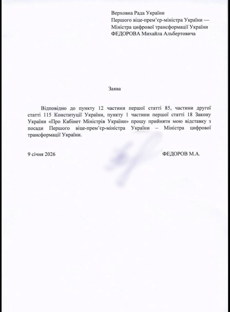 Михаил Федоров и Денис Шмыгаль написали заявление об отставке и подали их в Верховную Раду.