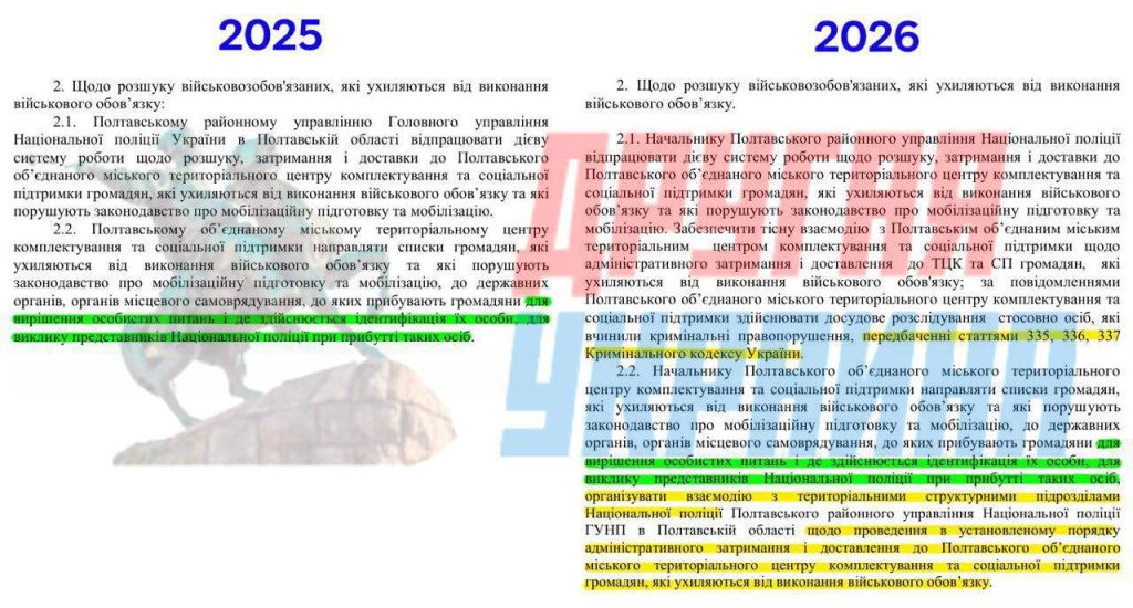 Полтавский горисполком утвердил план по усилению борьбы с теми, кто уклоняется от воинского учета и мобилизации. Документ предписывает полиции административно задерживать таких граждан и принудительно доставлять их в ТЦК.
