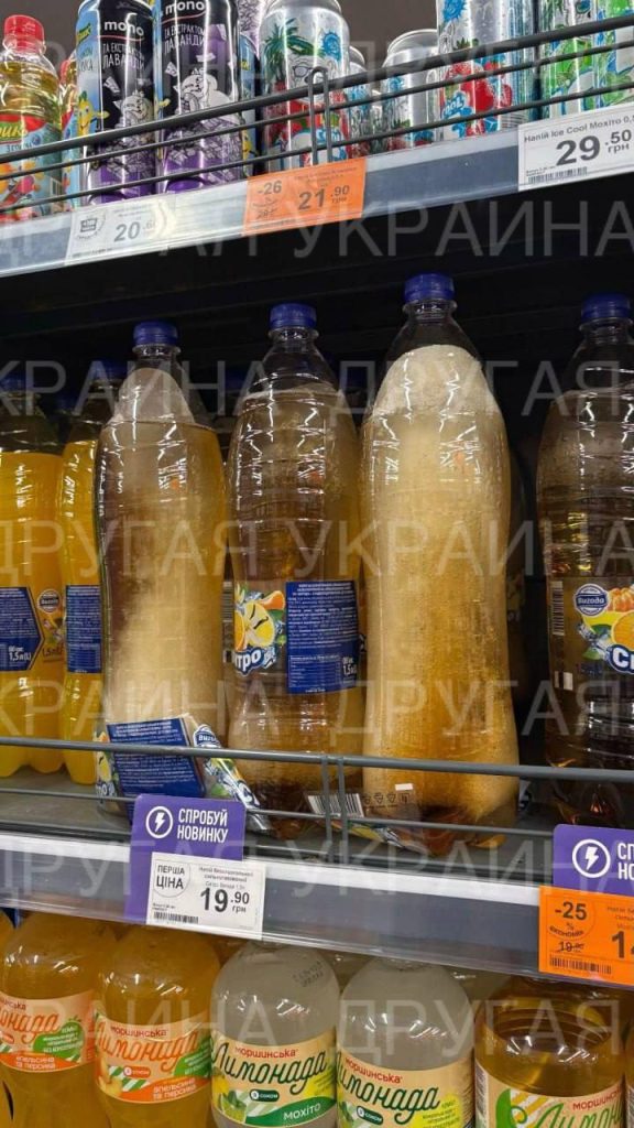 Вместо привычных напитков покупателям приходится покупать «ледяные глыбы» в пластике.