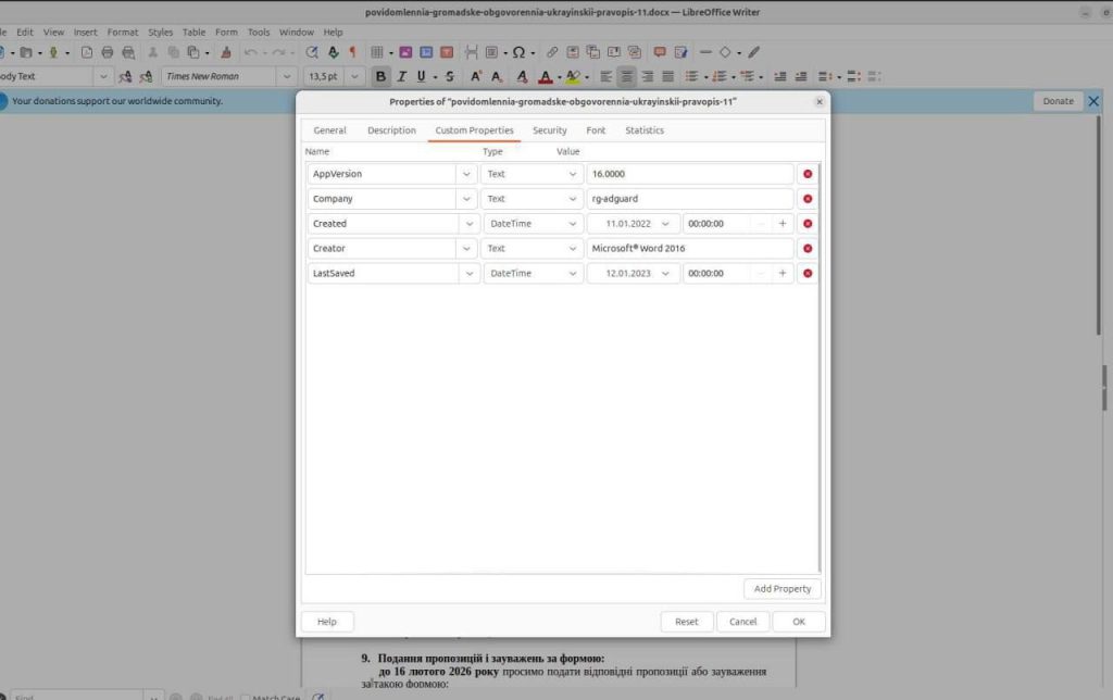 Кроме того, пользователи указали, что при работе над документом комиссия использовала русскоязычную пиратскую версию программного обеспечения Microsoft Office.