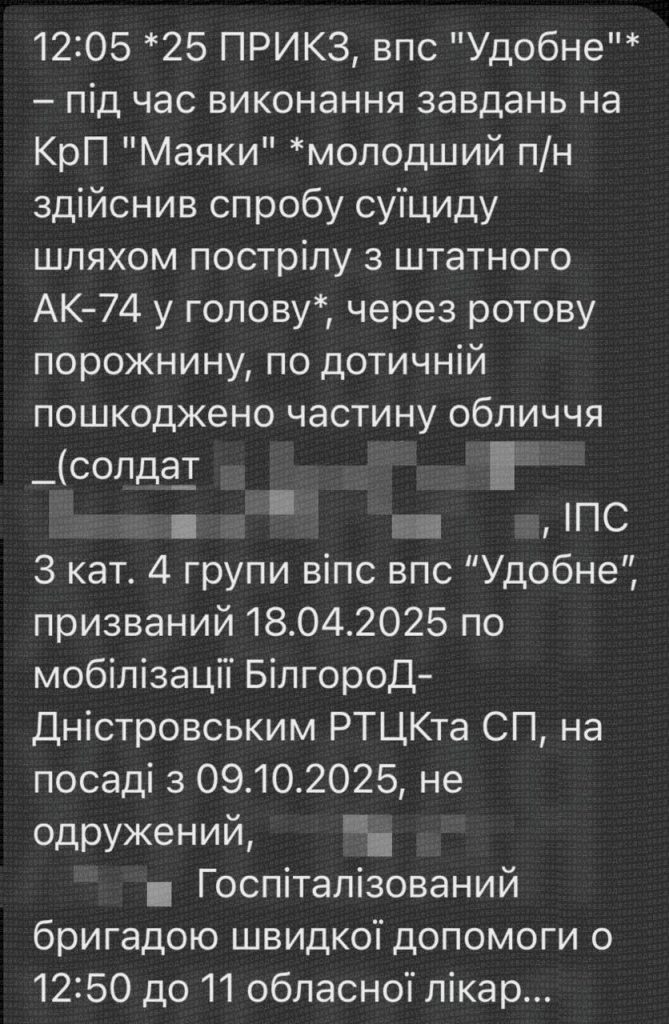 Пограничник пытался убить себя с помощью АК-74, его госпитализировали. Он был мобилизован в ВСУ осенью.