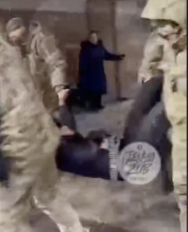 Бедолага пытался убежать от них и спрятаться в уборной на заправке. Его пытались защитить уборщица и девушка-кассир, которых сотрудники ТЦК тянули за руки.