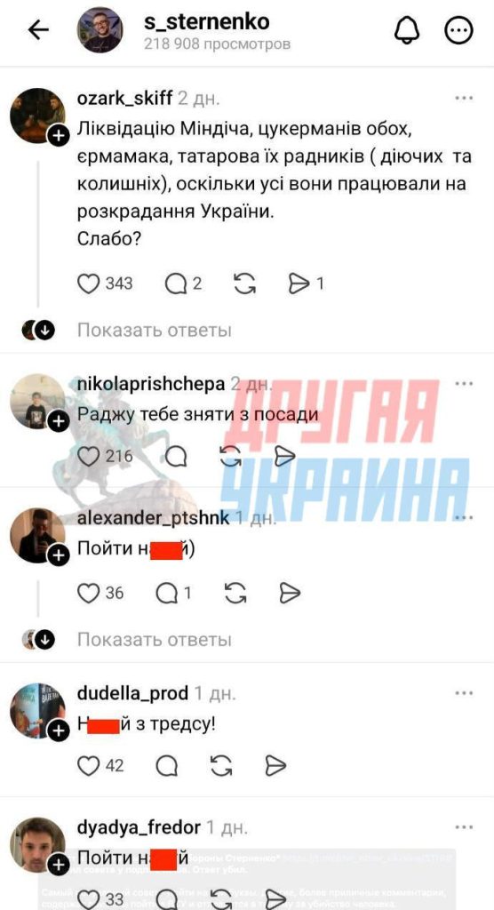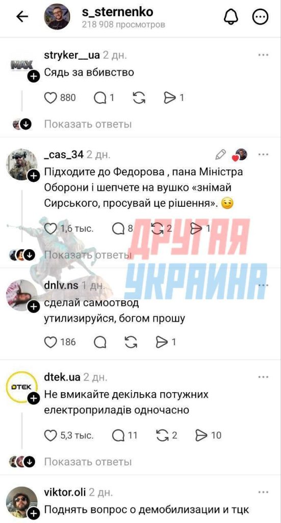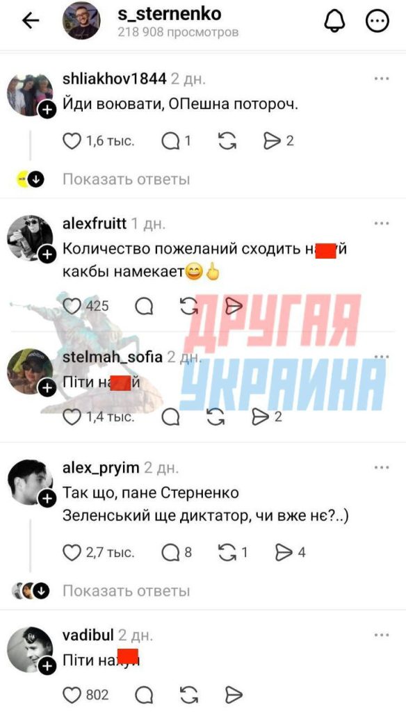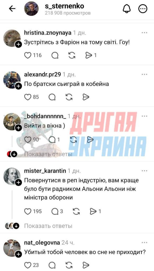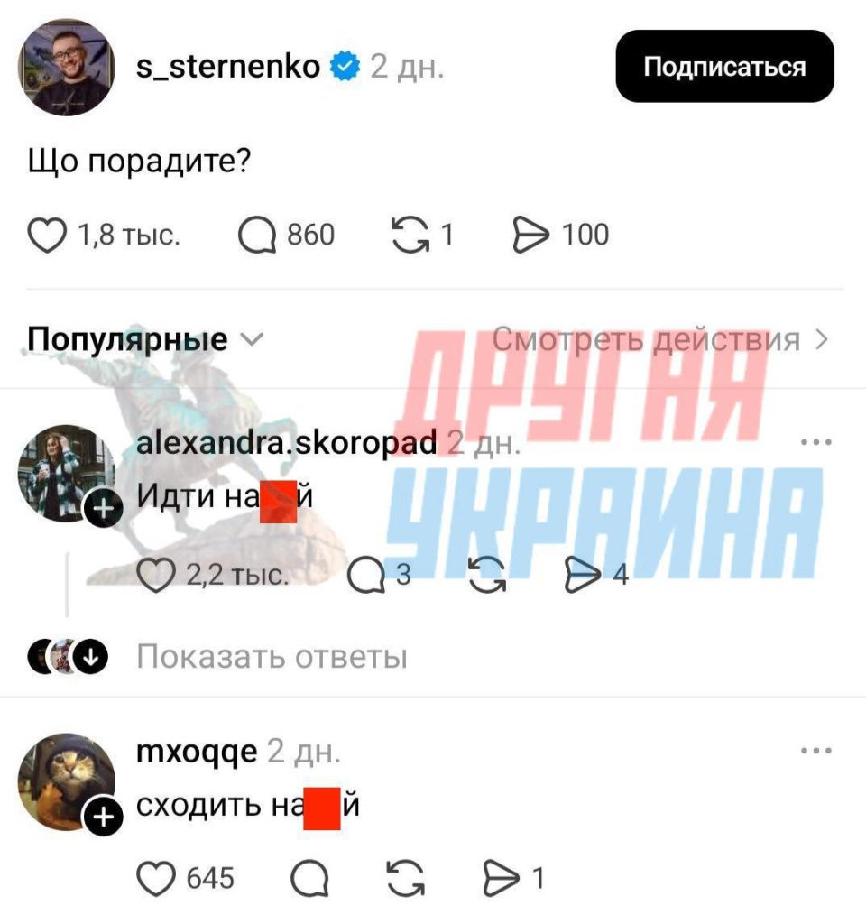Самый популярный совет — пойти на три буквы. Другие, более приличные комментарии, содержат призывы пойти в ВСУ и отправиться в тюрьму за убийство человека.