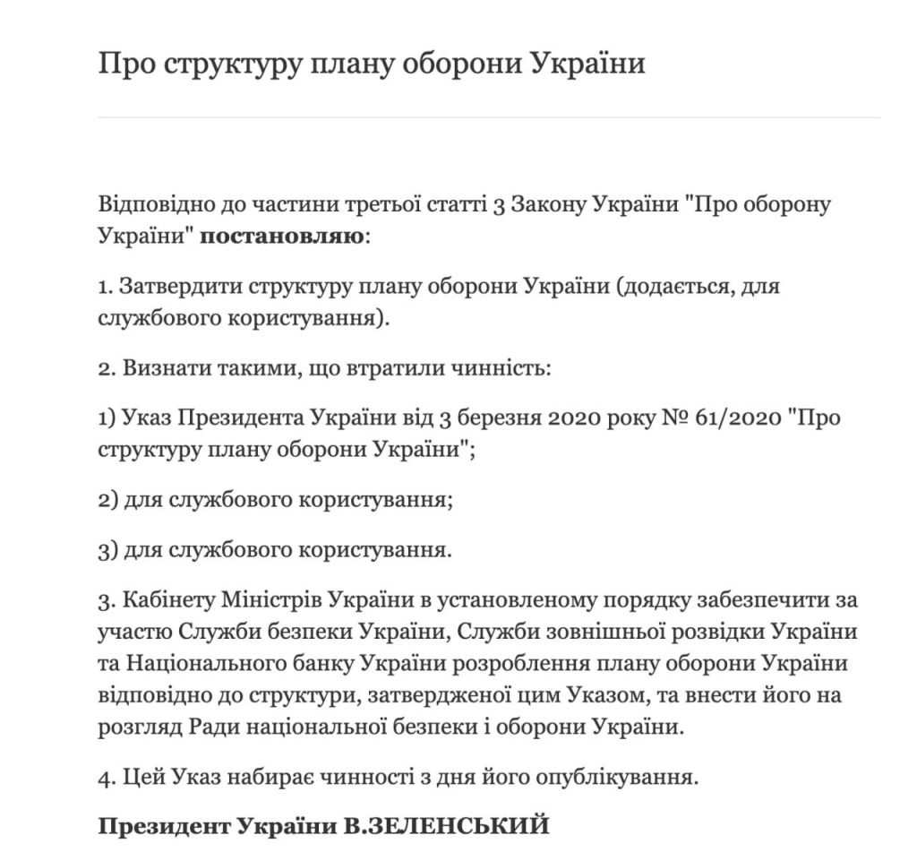 Владимир Зеленский дал поручение Кабинету министров разработать обновлённый план обороны государства.