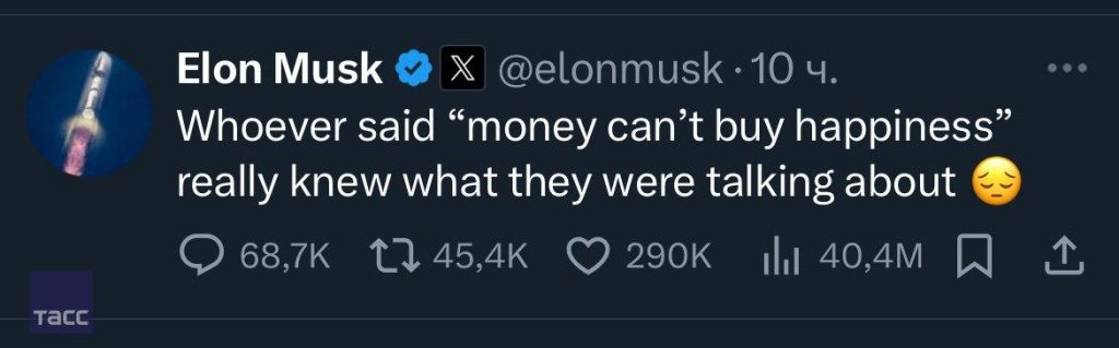 Илон Маск, ставший самым богатым человеком в истории с состоянием $852 млрд, публично признал: деньги не гарантируют счастья.