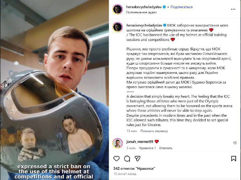 Скелетонисту Владиславу Гераскевичу запретили выступать на Олимпиаде в шлеме с изображениями погибших украинцев. В МОК напомнили: спорт вне политики, а украинцам стоит воздержаться от антироссийских акций.