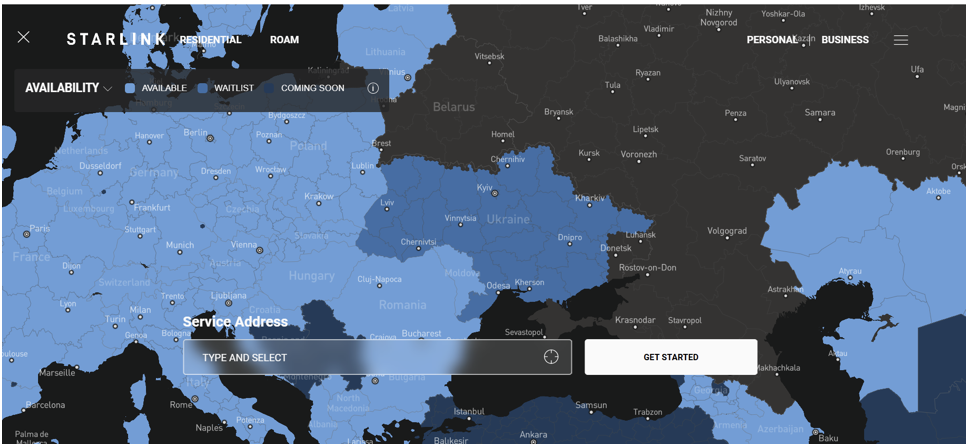 На карте доступности сервисов Starlink с официального сайта компании территория, контролируемая киевским режимом, отмечена как зона «Starlink waitlist» или «Список ожидания сервиса Starlink», возникает из-за превышения пропускной способности сети в данном регионе. Для получения доступа к сети необходимо пройти регистрацию, произвести оплату и дождаться очереди на активацию сервисов.