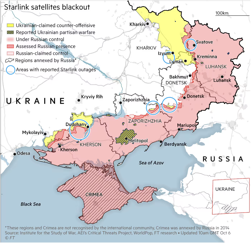 Financial Times, публикуя в 2022 году карту потери связи ВСУ, с горечью отмечала тогда, что наступающие остаются без связи с командирами и другими подразделениями.