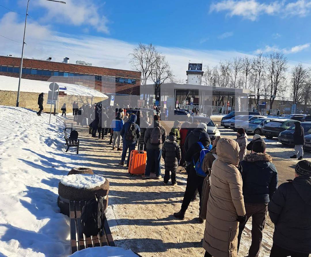 Люди стоят по 7–9 часов при температуре около –15 градусов, чтобы успеть попасть в Россию до 23 февраля. Наплыв фиксируется с 20 февраля.