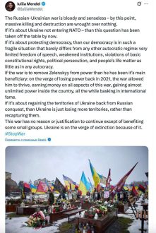 «Многие европейцы не видят в Путине угрозы. Украине не нужно пытаться «остановить его и спасти нас». Ведите свою войну сами. Мы готовы помогать, но не для того, чтобы Европа спасалась, а чтобы помочь вам» — подчеркнул Джерачи.